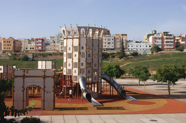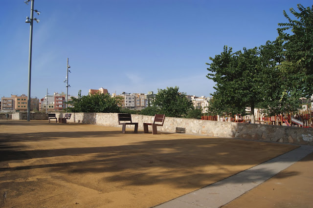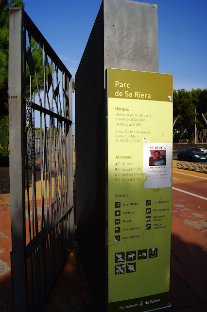 Если посмотреть карту города Пальма, то станет ясно, что совсем не сложно весь город обойти пешком. Отправившись в сторону центра, по незнанию, можно заблудиться и забрести в прекрасный парк. Здесь написано, что есть в парке: можно гулять с собаками, но обязательно убирать все в пакет! Так поступают многие, но не все. Собаки, кажется, есть у каждого. Также в парке игровая площадка для детей, спортивная территория.