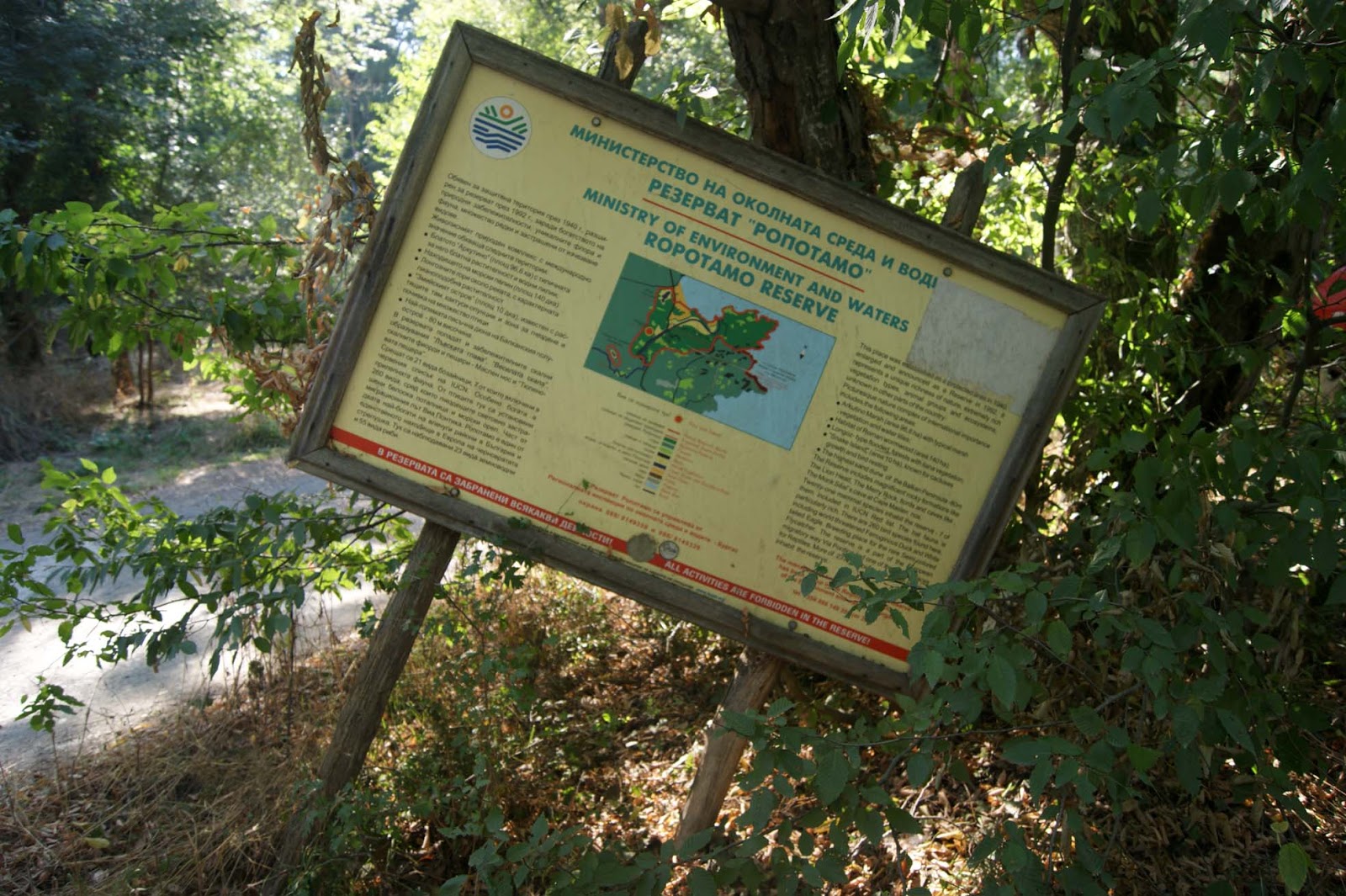 Вход в заповедник Ропотамо. В рекламном проспекте, предлагаемом туристам, говорится, что здесь можно легко увидеть как лягушек, так и болгарских оленей. У нас желание было чуть проще — черепахи.