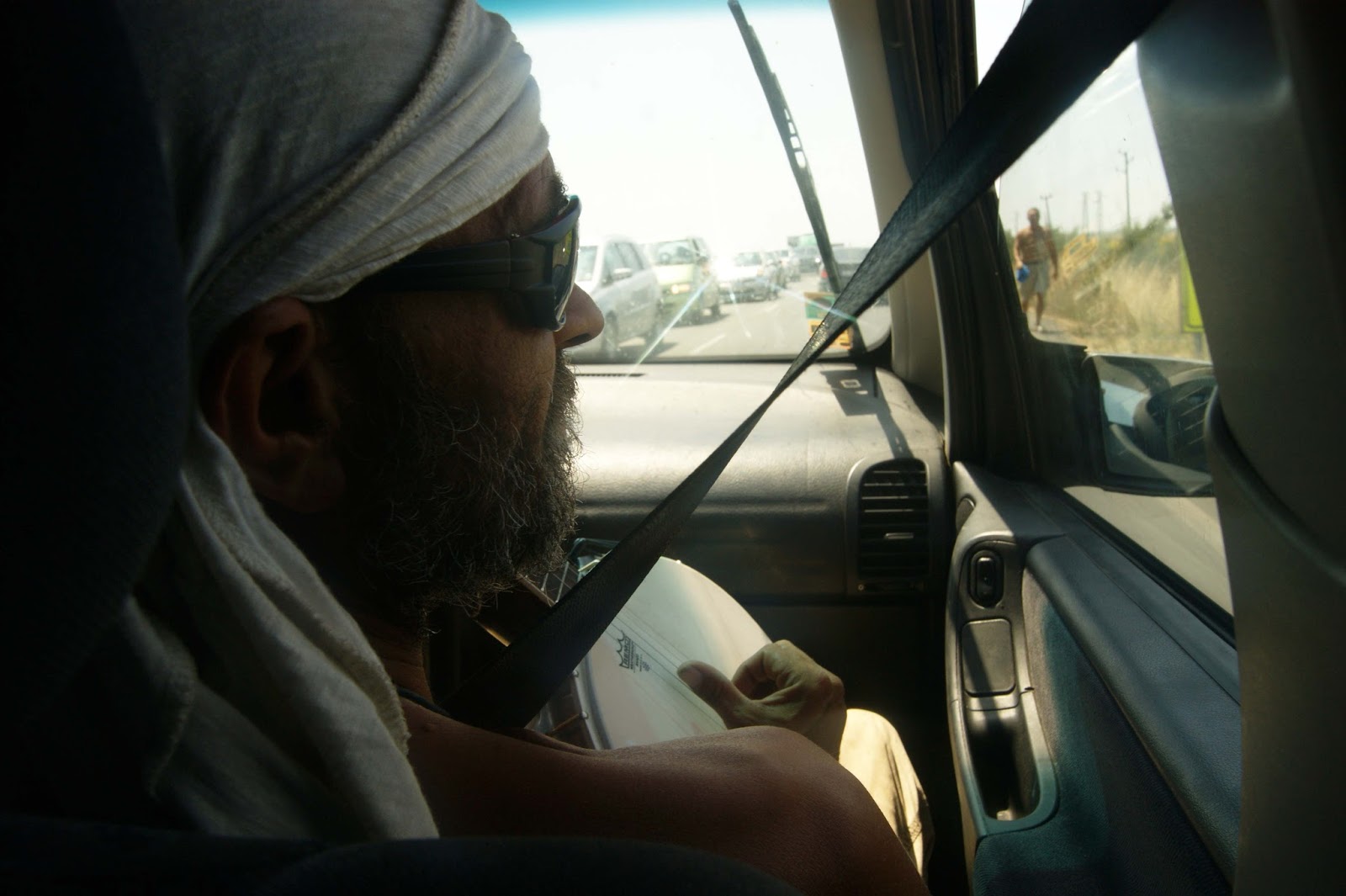 После Ахелоя, в 5-ти километрах от Равды, находится дорожная развязка на Софию и Бургас. Только мы перешли дорогу, как затормозила машина. Первое, что я увидела в ней: гитара и банджо. «Ура, УРА!!», — думаю, музыканты. Которые ехали в Созополь