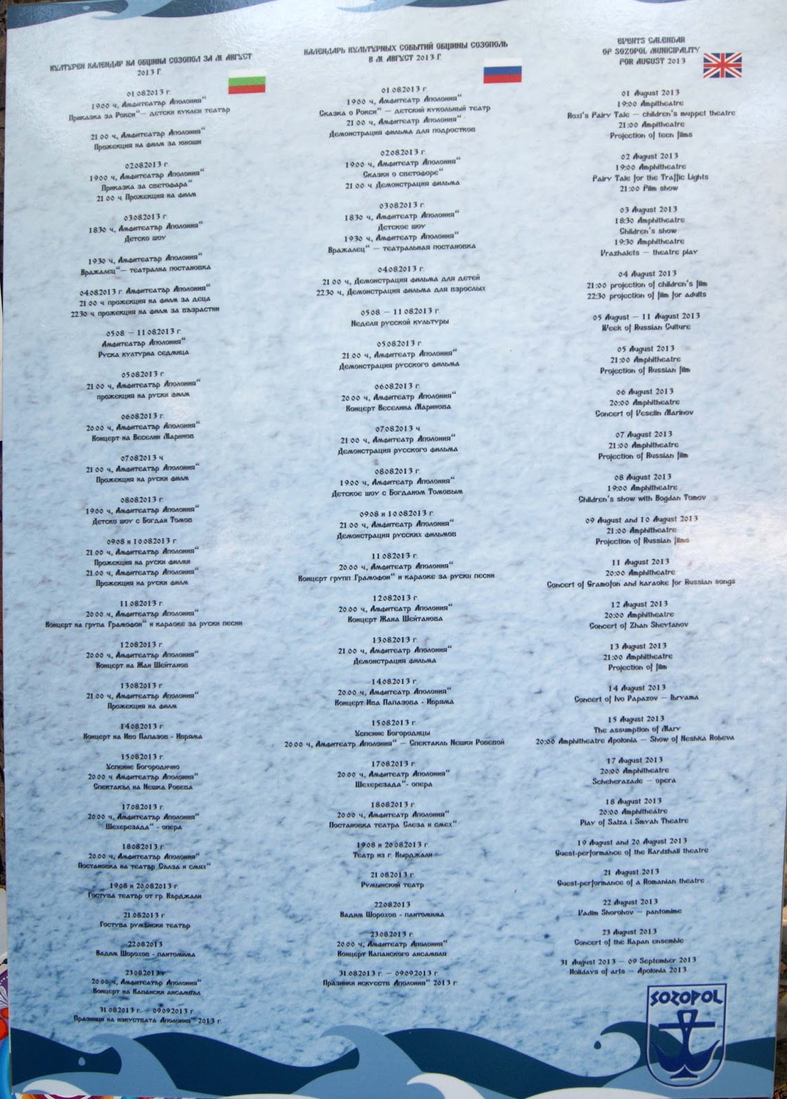 Расписание культурных мероприятий в старом городе на трех языках. Все мероприятия разные.